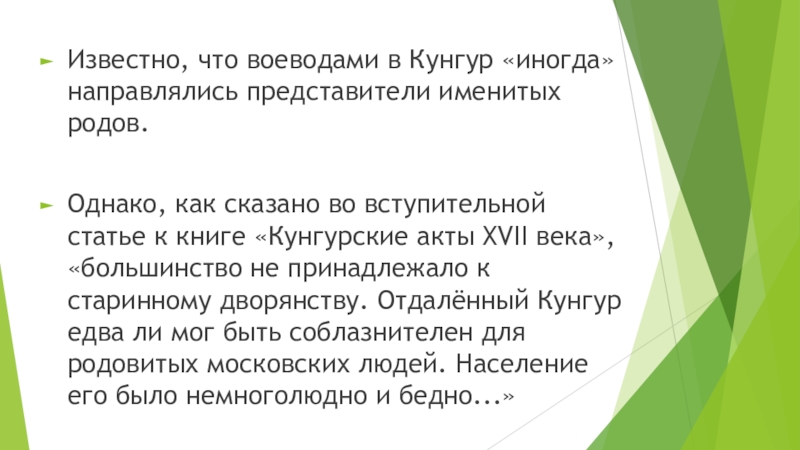 Слайд 15Известно, что воеводами в Кунгур «иногда» направлялись представители именитых родов.
