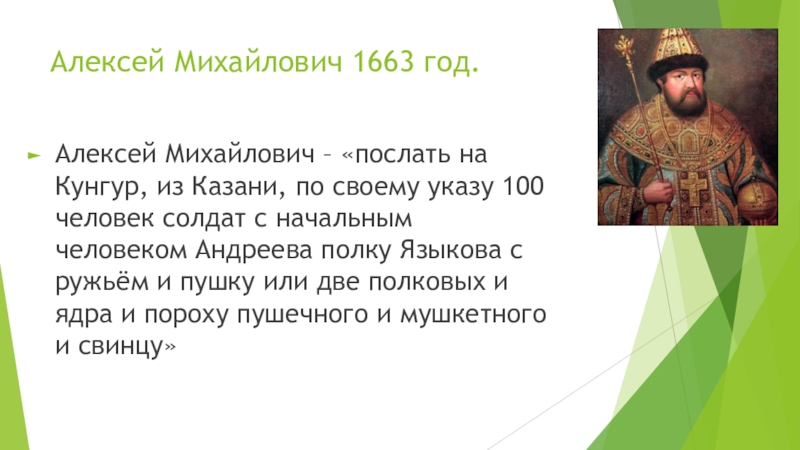Алексей Михайлович – «послать на Кунгур, из Казани,