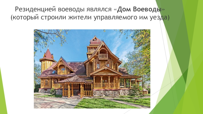 Слайд 12Резиденцией воеводы являлся «Дом Воеводы» (который строили жители управляемого им уезда)