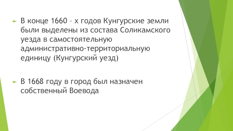 Слайд 9В конце 1660 – х годов Кунгурские земли были выделены из