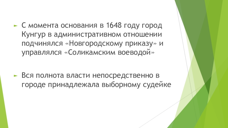 Слайд 2С момента основания в 1648 году город Кунгур в административном отношении