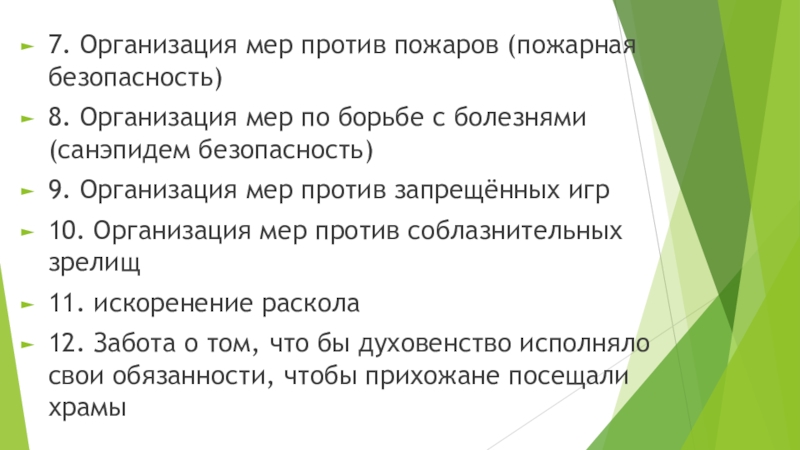 12. Забота о том, что бы духовенство исполняло свои обязанности, чтобы прихожане посещали храмы