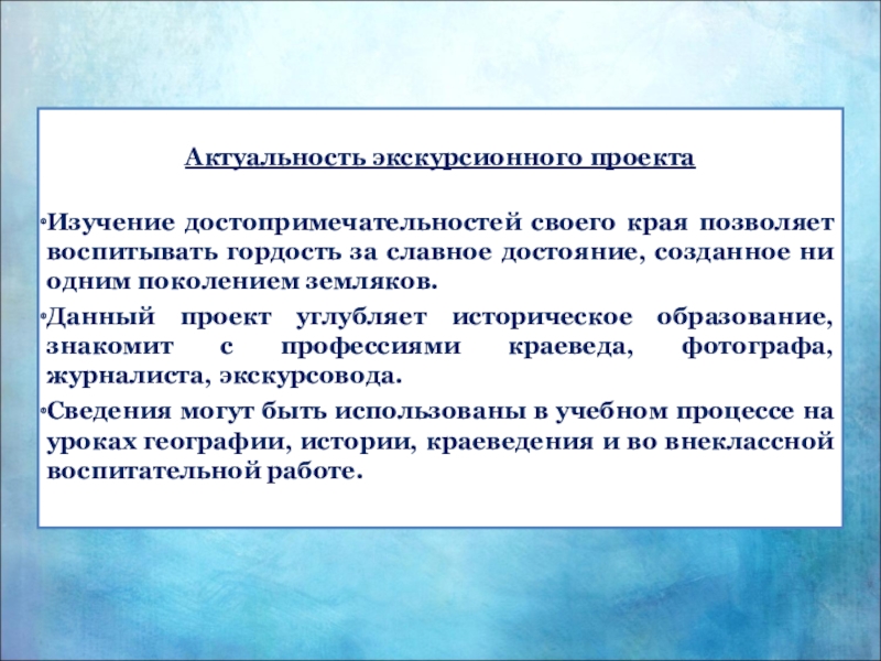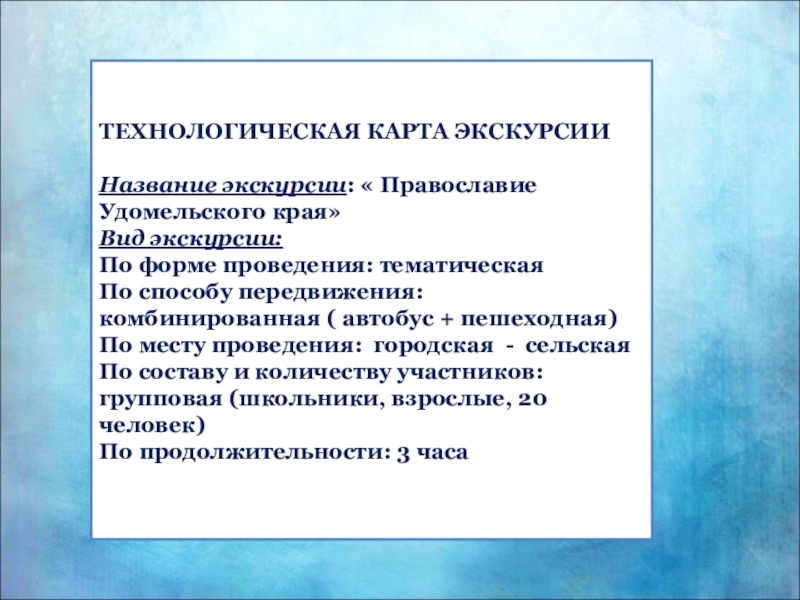 На основании изученных материалов разработать экскурсионный маршрут и подготовить экскурсию