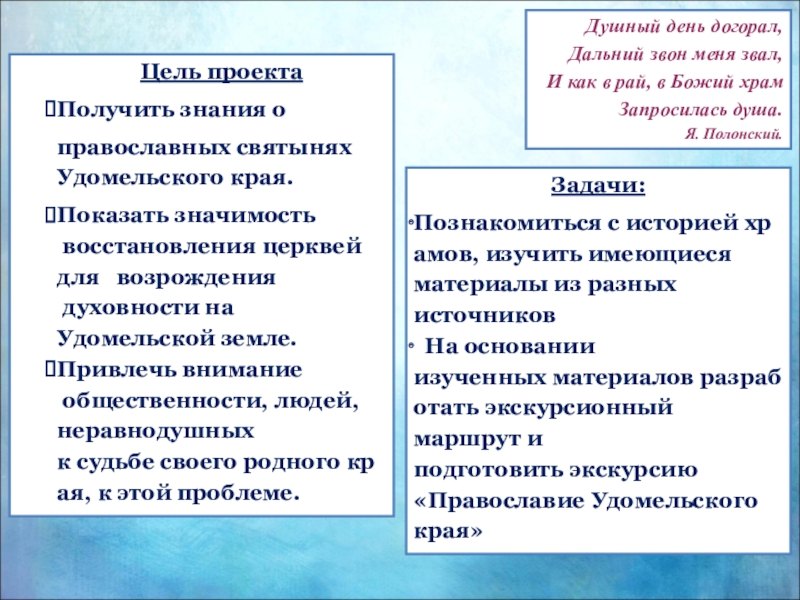 Познакомиться с историей храмов, изучить имеющиеся материалы из разных источников