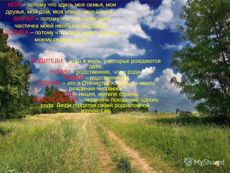 РОДИНА – это и Отечество, страна, и место рождения человека.