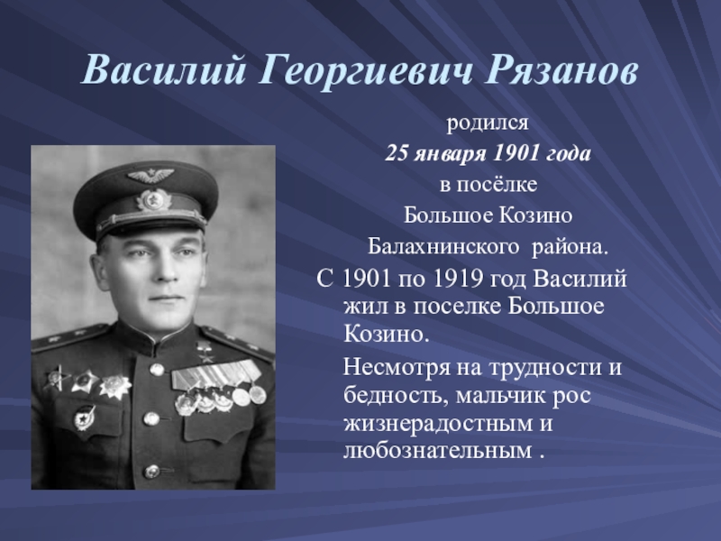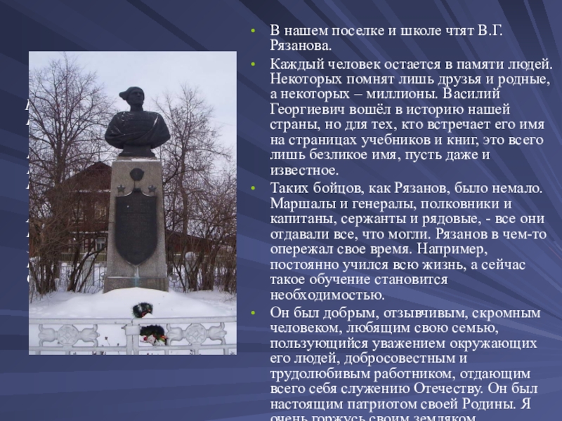 В нашем поселке и школе чтят В.Г.Рязанова.