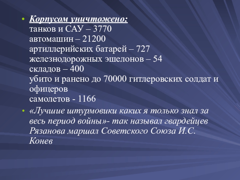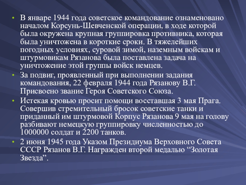 Таких бойцов, как Рязанов, было немало. Маршалы и генералы, полковники и капитаны, сержанты и рядовые, - все они отдавали все, что могли. Рязанов в чем-то опережал свое время. Например, постоянно учился всю жизнь, а сейчас такое обучение становится необходимостью.