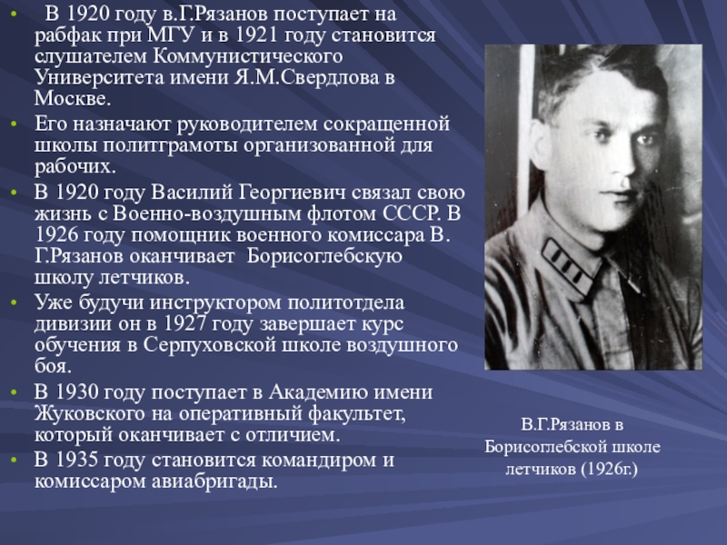 В.Г.Рязанов в Борисоглебской школе летчиков (1926г.)