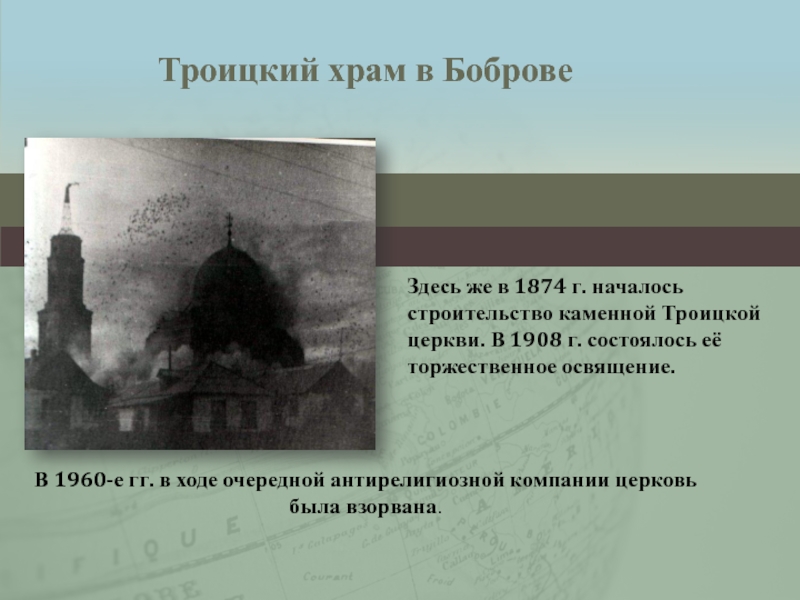 В 1960-е гг. в ходе очередной антирелигиозной компании церковь была взорвана.