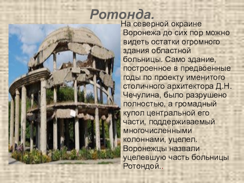 Воронежцы назвали уцелевшую часть больницы Ротондой..