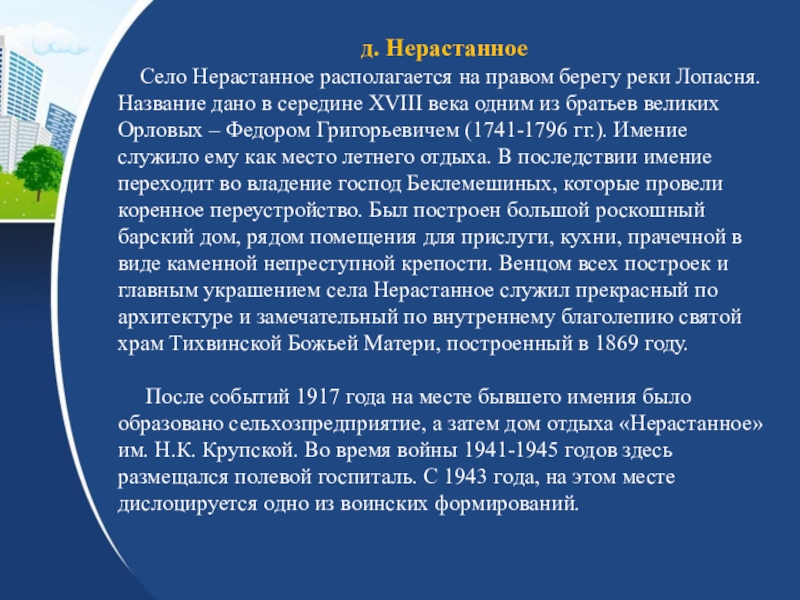 Презентация, доклад по Краеведению Прогулка по родному краю