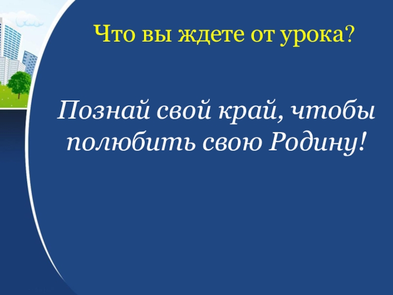 Что вы ждете от урока?Познай свой край, чтобы полюбить свою Родину!
