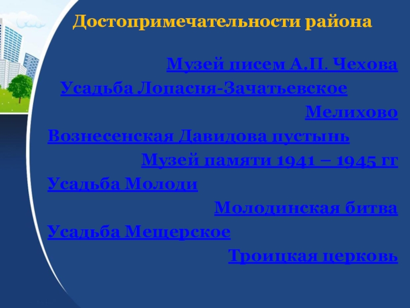 Достопримечательности района.