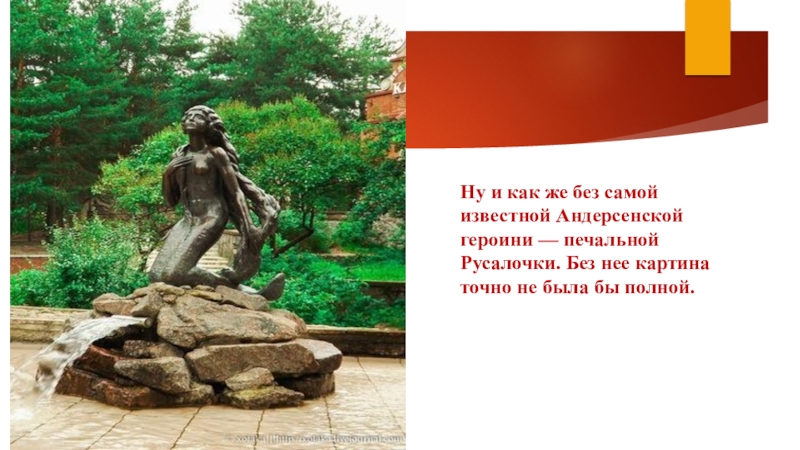 Слайд 13Ну и как же без самой известной Андерсенской героини — печальной