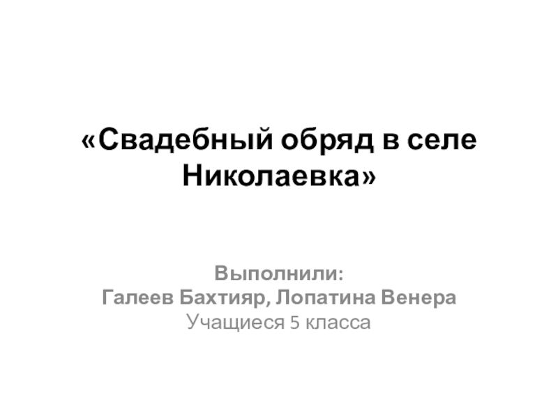 «Свадебный обряд в селе Николаевка»  Выполнили:Галеев Бахтияр, Лопатина ВенераУчащиеся 5 класса