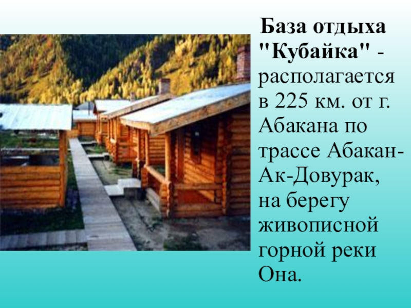 Слайд 14 База отдыха "Кубайка" - располагается в 225 км. от