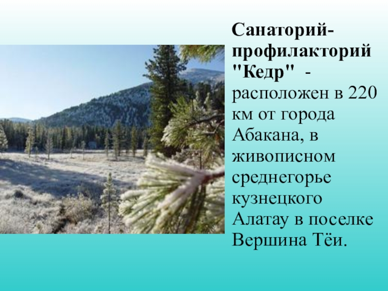Слайд 19 Санаторий-профилакторий "Кедр" - расположен в 220 км от города