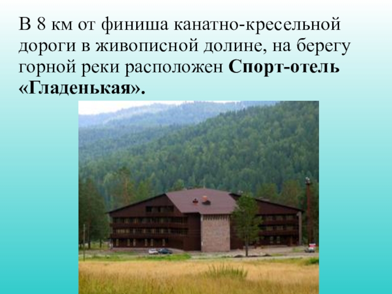 долине, на берегу горной реки расположен Спорт-отель «Гладенькая».