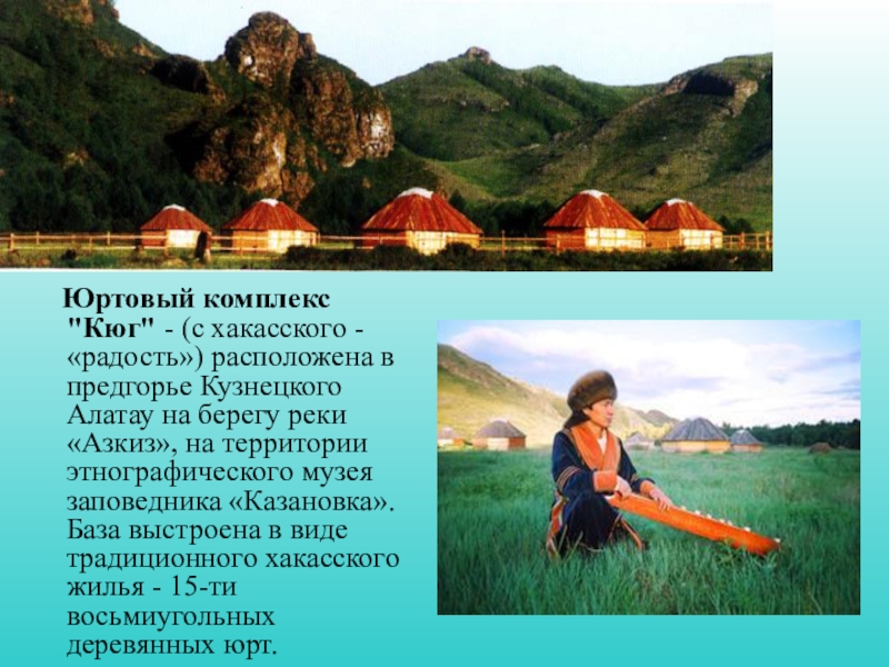Слайд 17 Юртовый комплекс "Кюг" - (с хакасского - «радость») расположена