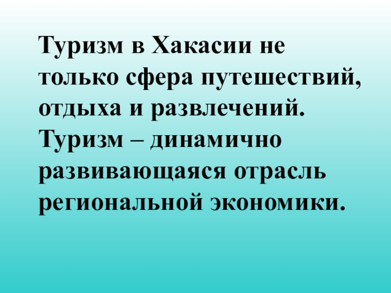 Туризм в Хакасии не только сфера путешествий, отдыха и развлечений. Туризм – динамично развивающаяся отрасль