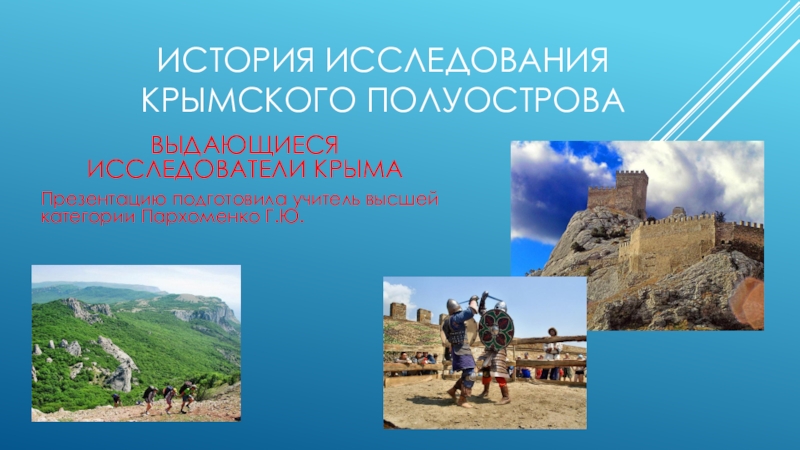 Слайд 1ИСТОРИЯ ИССЛЕДОВАНИЯ КРЫМСКОГО ПОЛУОСТРОВА