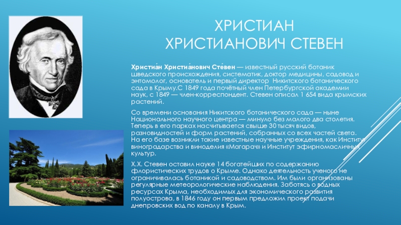 Христиа́н Христиа́нович Сте́вен — известный русский ботаник шведского происхождения, систематик,
