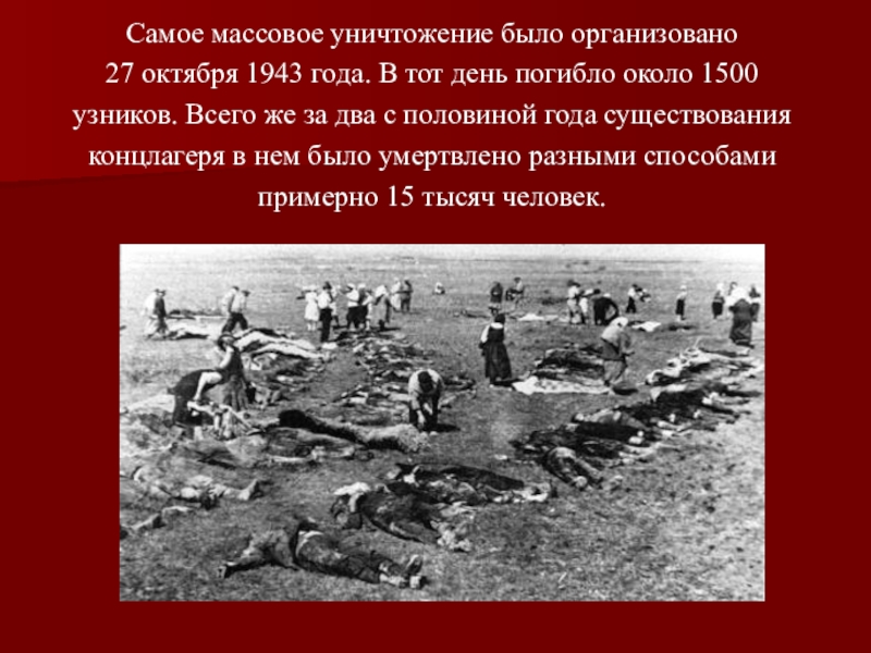 Слайд 11Самое массовое уничтожение было организовано