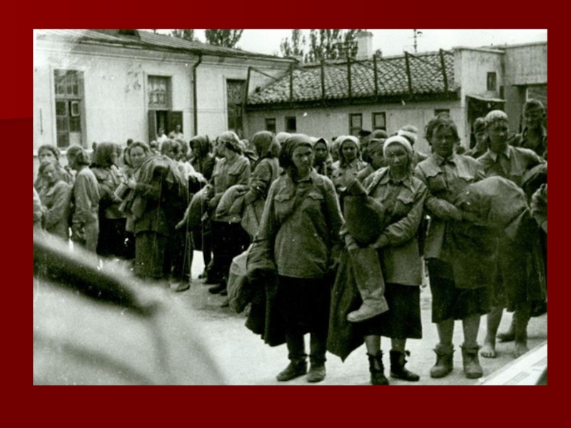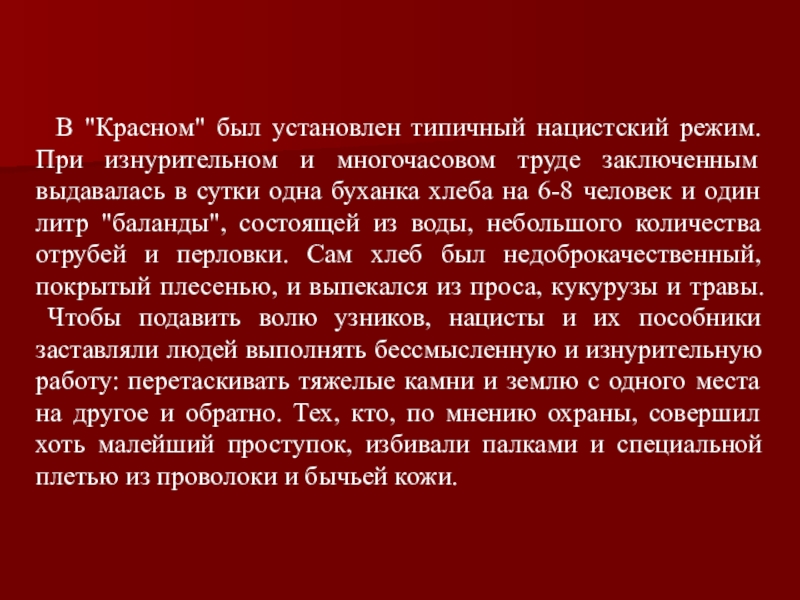 Слайд 7 В "Красном" был установлен типичный нацистский режим. При изнурительном и
