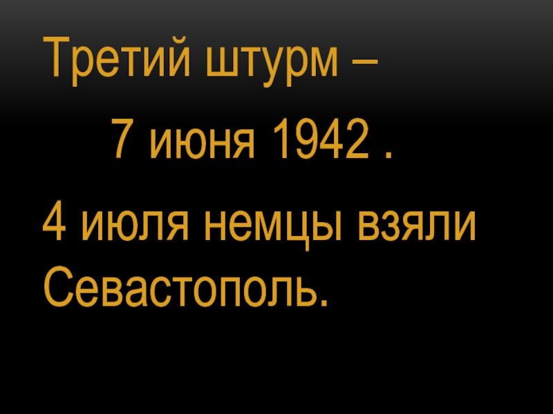 Третий штурм –		 7 июня 1942 .4 июля немцы взяли Севастополь.