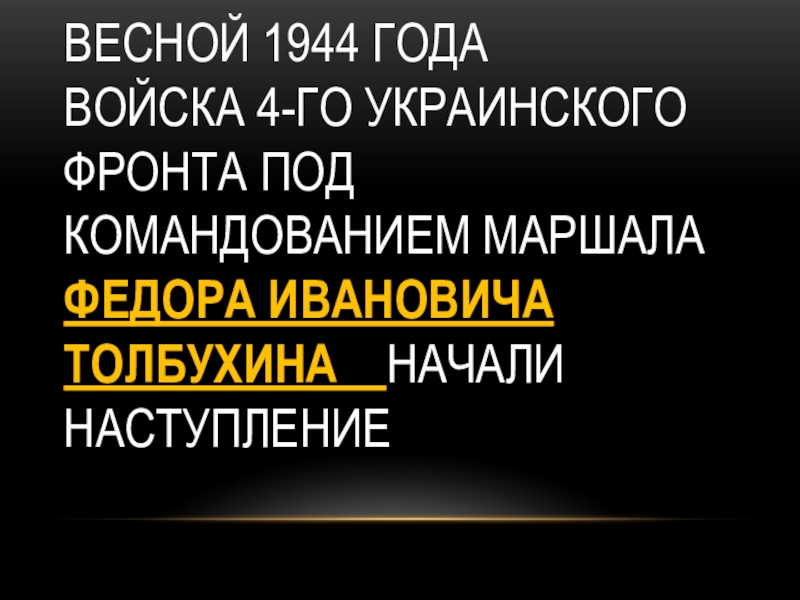 Слайд 43Весной 1944 года войска 4-го украинского фронта под командованием маршала федора