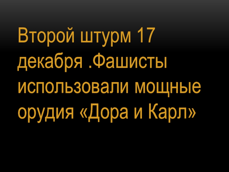 Слайд 9Второй штурм 17 декабря .Фашисты использовали мощные орудия «Дора и Карл»