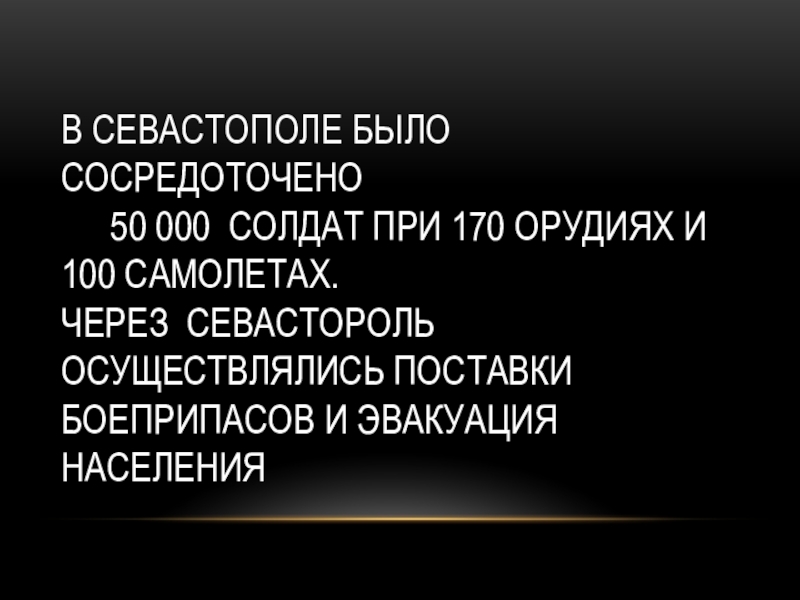 В севастополе было сосредоточено 	 50 000 солдат при 170 орудиях и  100 самолетах. Через севастороль