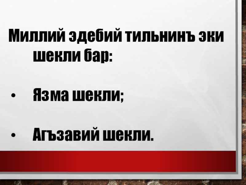 Слайд 5Миллий эдебий тильнинъ эки шекли бар:
