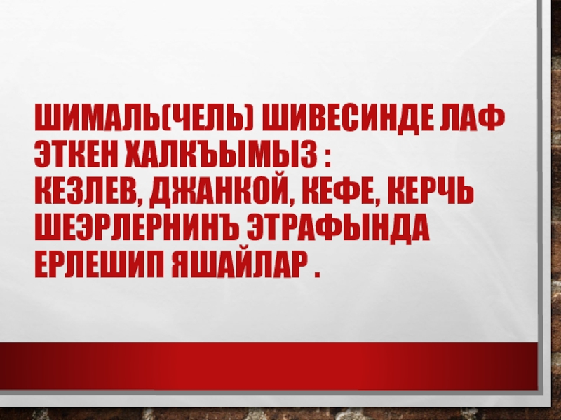 Слайд 9Шималь(чель) шивесинде лаф эткен халкъымыз : Кезлев, Джанкой, Кефе, Керчь шеэрлернинъ этрафында