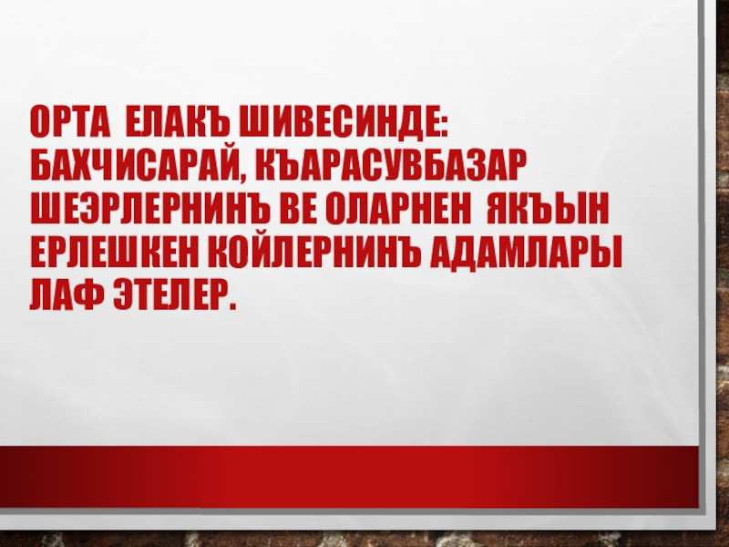 Слайд 8Орта елакъ шивесинде: Бахчисарай, Къарасувбазар шеэрлернинъ ве оларнен якъын ерлешкен койлернинъ адамлары