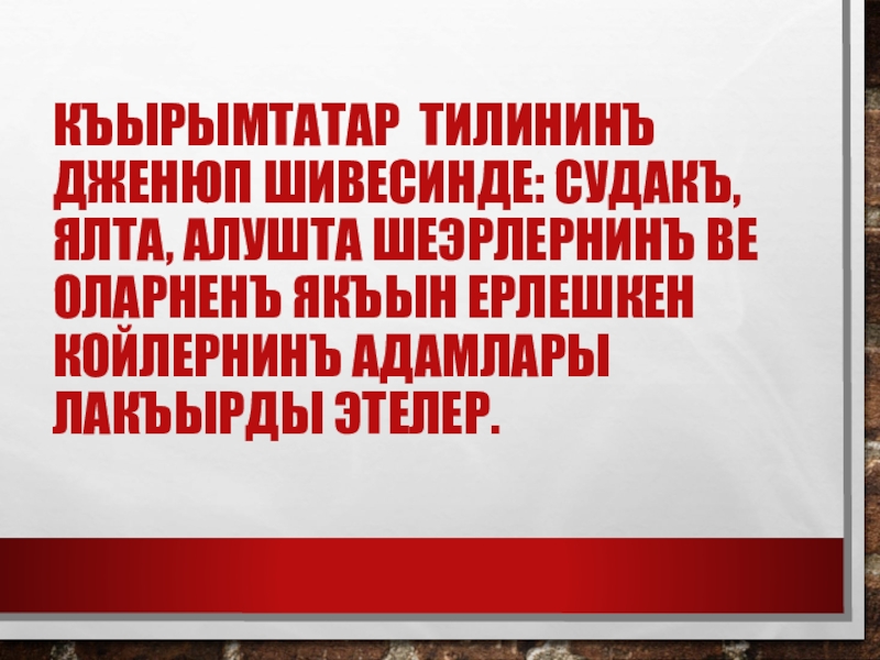 Слайд 7Къырымтатар тилининъ дженюп шивесинде: Судакъ, Ялта, Алушта шеэрлернинъ ве оларненъ якъын