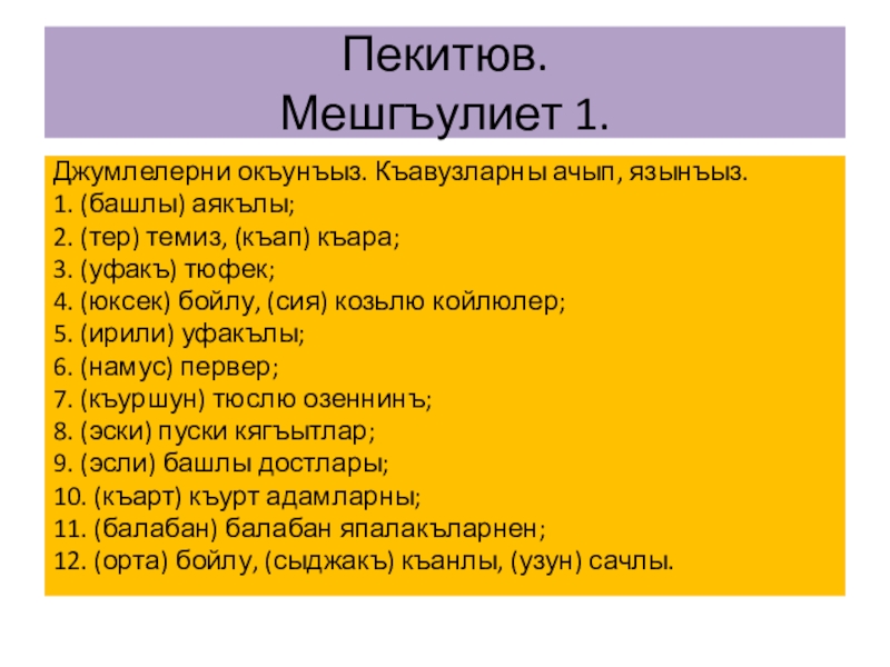 Джумлелерни окъунъыз. Къавузларны ачып, язынъыз.