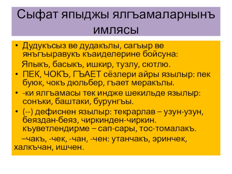 Слайд 3Сыфат япыджы ялгъамаларнынъ имлясы