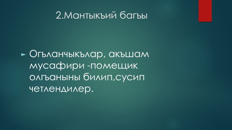 Слайд 31.Мундереджели,вакъиалалы, сюжет иле багъы.