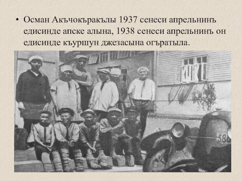 Слайд 5Осман Акъчокъракълы 1937 сенеси апрельнинъ едисинде апске алына, 1938 сенеси апрельнинъ