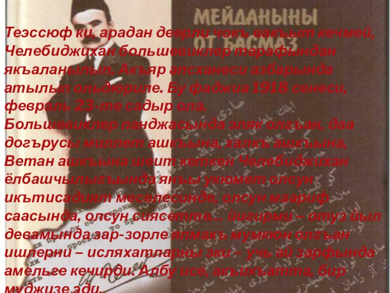Слайд 7Теэссюф ки, арадан деерли чокъ вакъыт кечмей, Челебиджихан большевиклер тарафындан якъаланылып,
