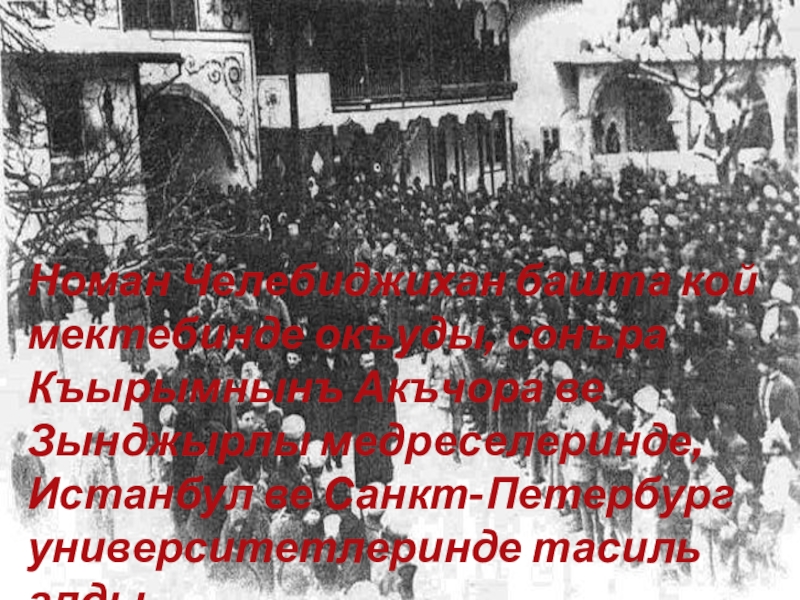 Слайд 3Номан Челебиджихан башта кой мектебинде окъуды, сонъра Къырымнынъ Акъчора ве Зынджырлы