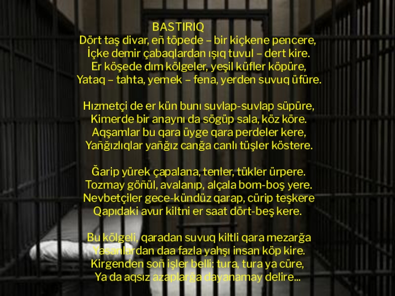 Dört taş divar, eñ töpede – bir kiçkene pencere,
