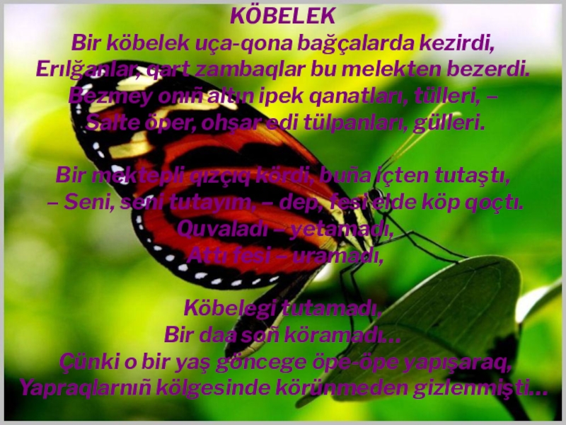 Bir köbelek uça-qona bağçalarda kezirdi,