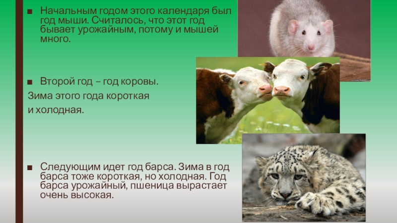 Слайд 5Начальным годом этого календаря был год мыши. Считалось, что этот год