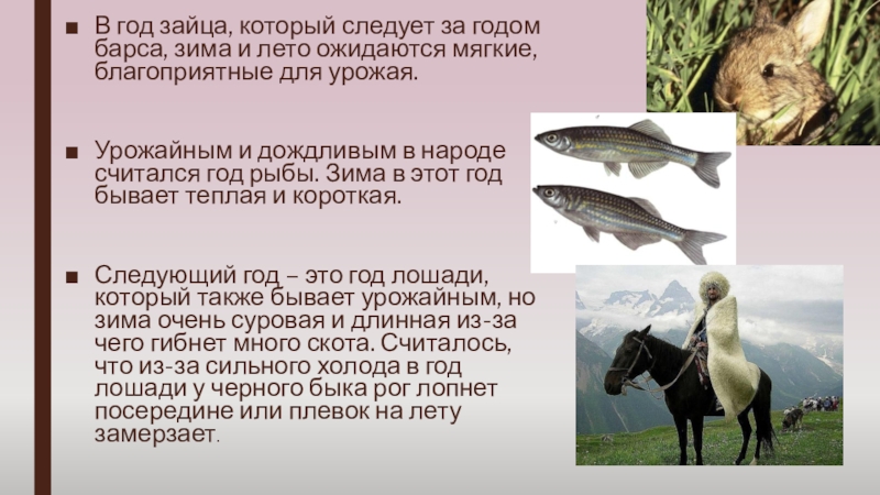 Слайд 6В год зайца, который следует за годом барса, зима и лето