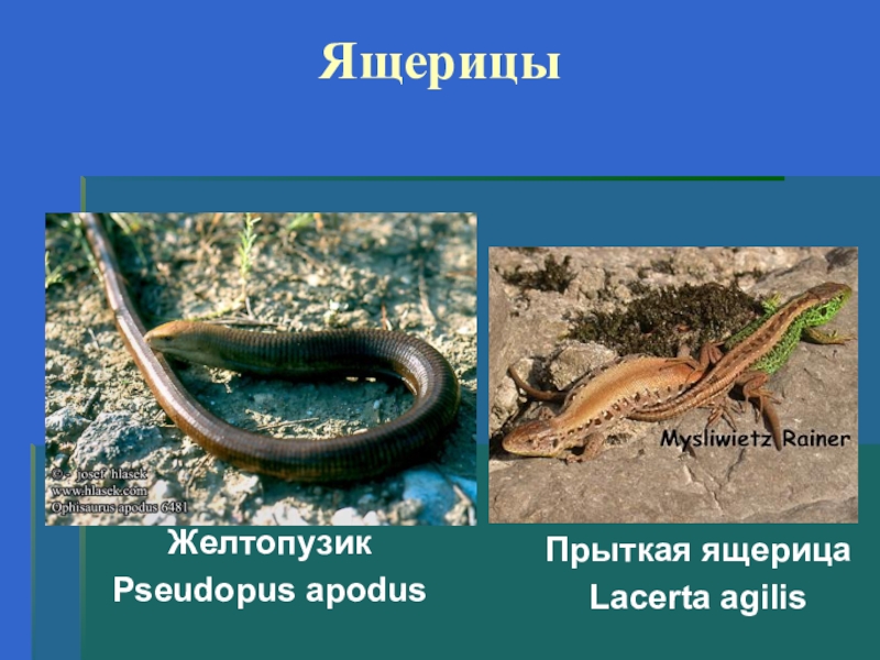 ЯщерицыЖелтопузикPseudopus apodusПрыткая ящерицаLacerta agilis