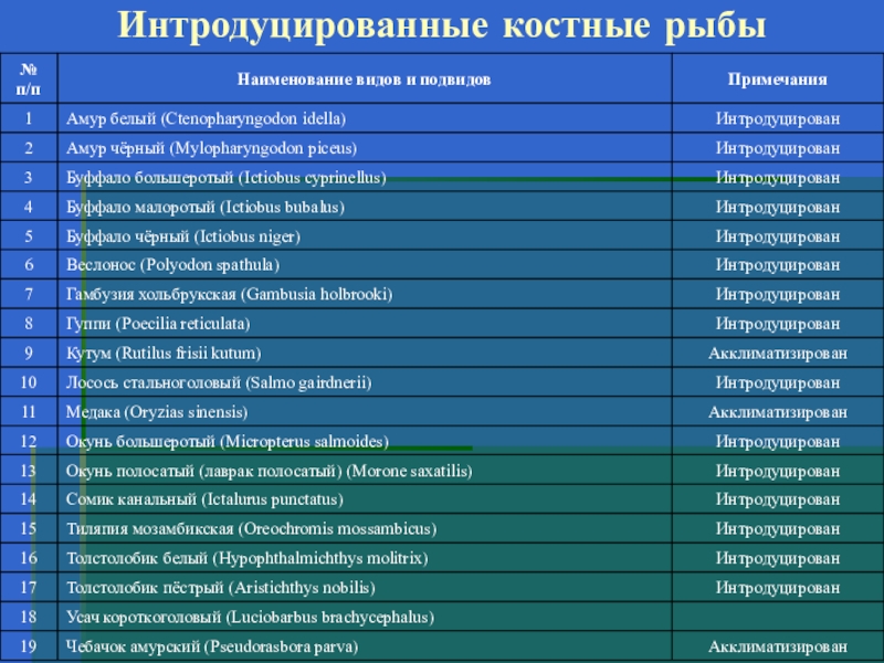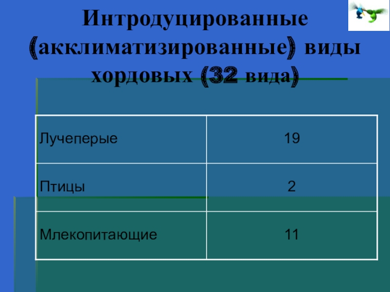 Слайд 30Интродуцированные (акклиматизированные) виды хордовых (32 вида)