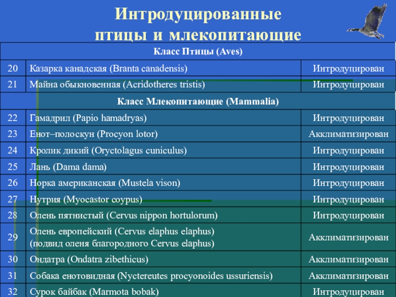 Интродуцированные (акклиматизированные) виды хордовых (32 вида)