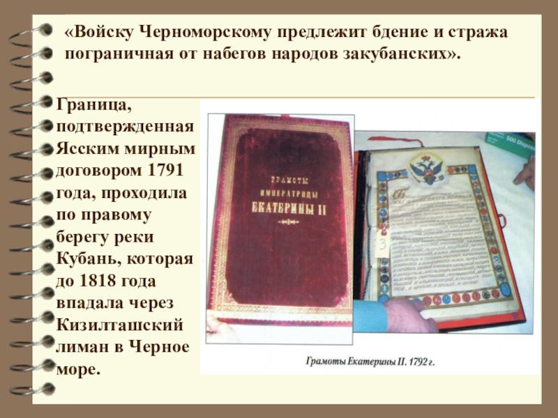Граница, подтвержденная Ясским мирным договором 1791 года, проходила по правому берегу реки Кубань, которая до 1818 года впадала через Кизилташский лиман в Черное море.